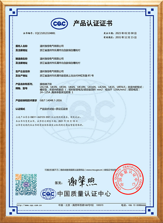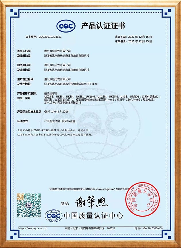 公司目前产品主要有:UK接线端子、TB固定式端子排、TC大电流端子排、按钮、信号灯、转换开关、尼龙扎带、缠绕管熔断器、绝缘热缩管等系列产品,并以高性价比赢得广大用户的青睐与好评。公司始终致力于通过技术、管理和产品的不断优化,实现公司价值最大化,将公司发展成为富有竞争力、富有创造力、富有价值的企业。公司拥有先进的检测设备、精湛的生产工艺、完善的科技管理体系,以客户需求为中心,在国内为多家企业提供产品、获得了众多企业的一致信任和好评。